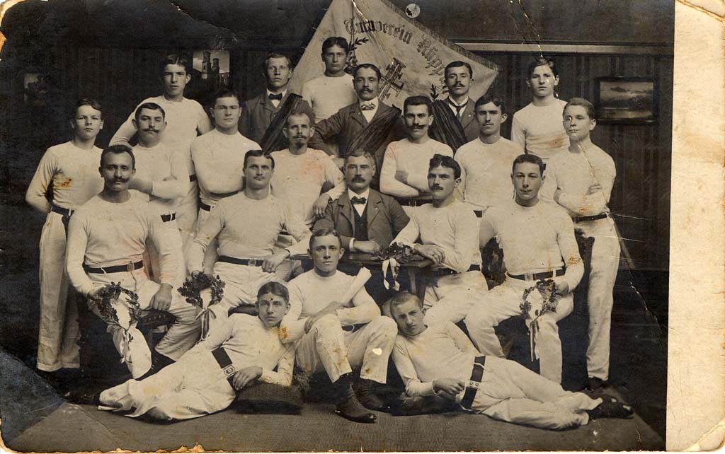 - Der Turnbetrieb der Männer- und Knabenriege findet zunächst im Hof des Vorstands Fritz Hiller in der Rastatter Straße statt. 1875 werden die Übungsstunden in den Schloßhof nach Kleinrüppurr verlegt. Anschaffung erster Turngeräte